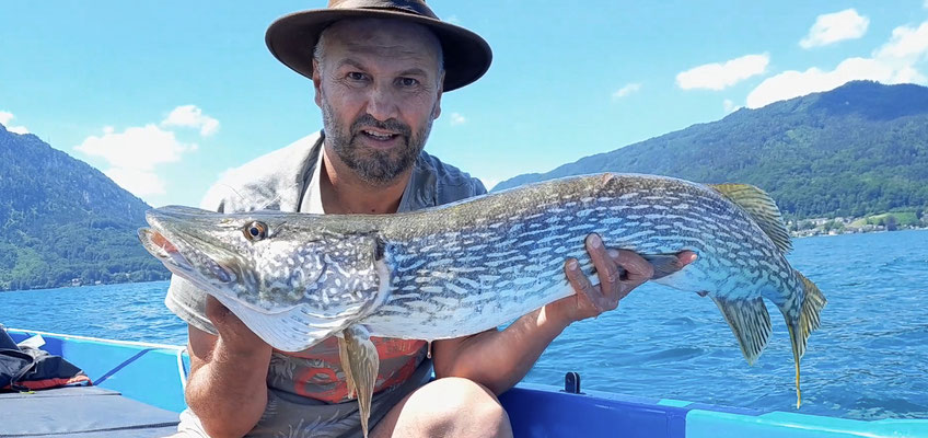 112cm Hecht aus dem Attersee, Hechtfischen mit einem Hechtspezialisten